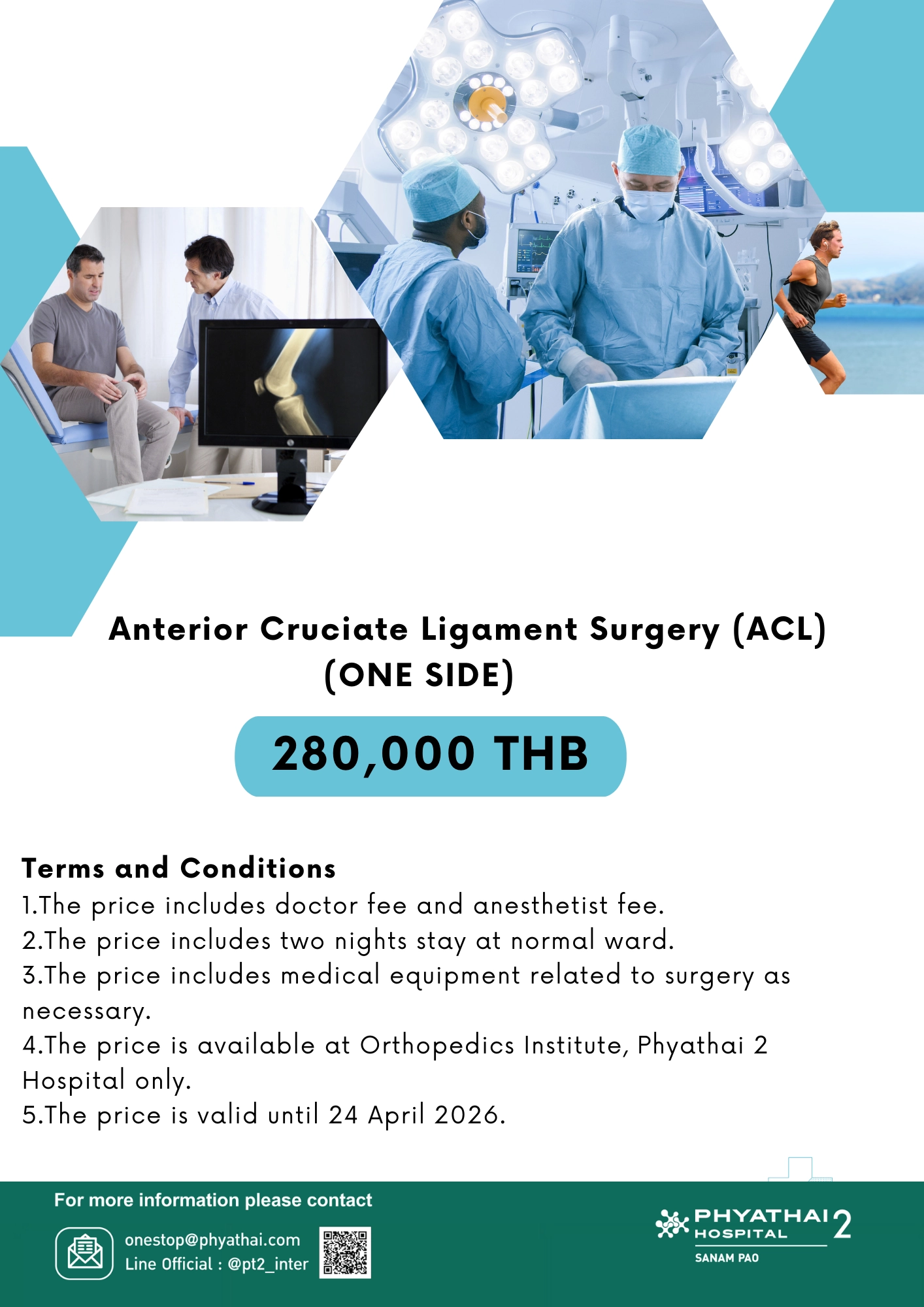 | Artroscopic with ACL - 1 side | 2 Nights | 280,000 |